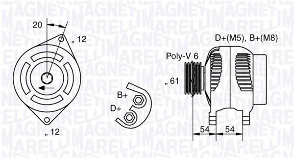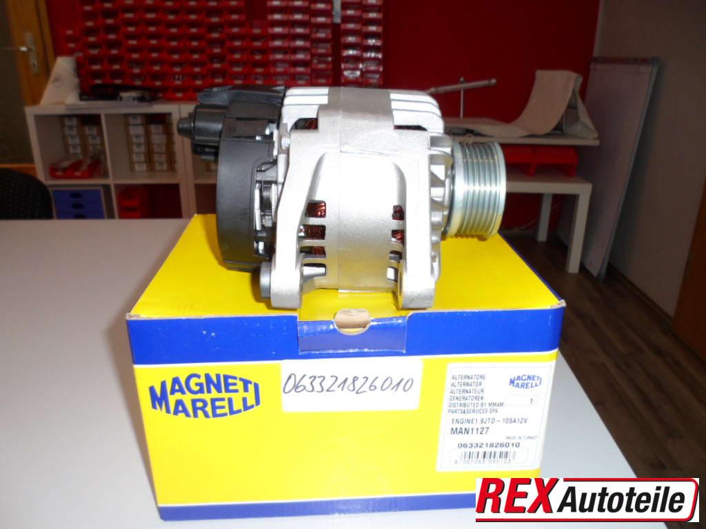Lichtmaschine ORIGINAL MARELLI NEU 12V 105A, ALFA ROMEO 147 (937), 156 (932), GT (937), FIAT BRAVA I (182), DOBLO (119, 223), IDEA (350), MAREA (185), MULTIPLA (186), PUNTO (188), STILO (192), LANCIA LYBRA (839, MUSA (350), , MAN1127, Vgl. 51859053, 71794788